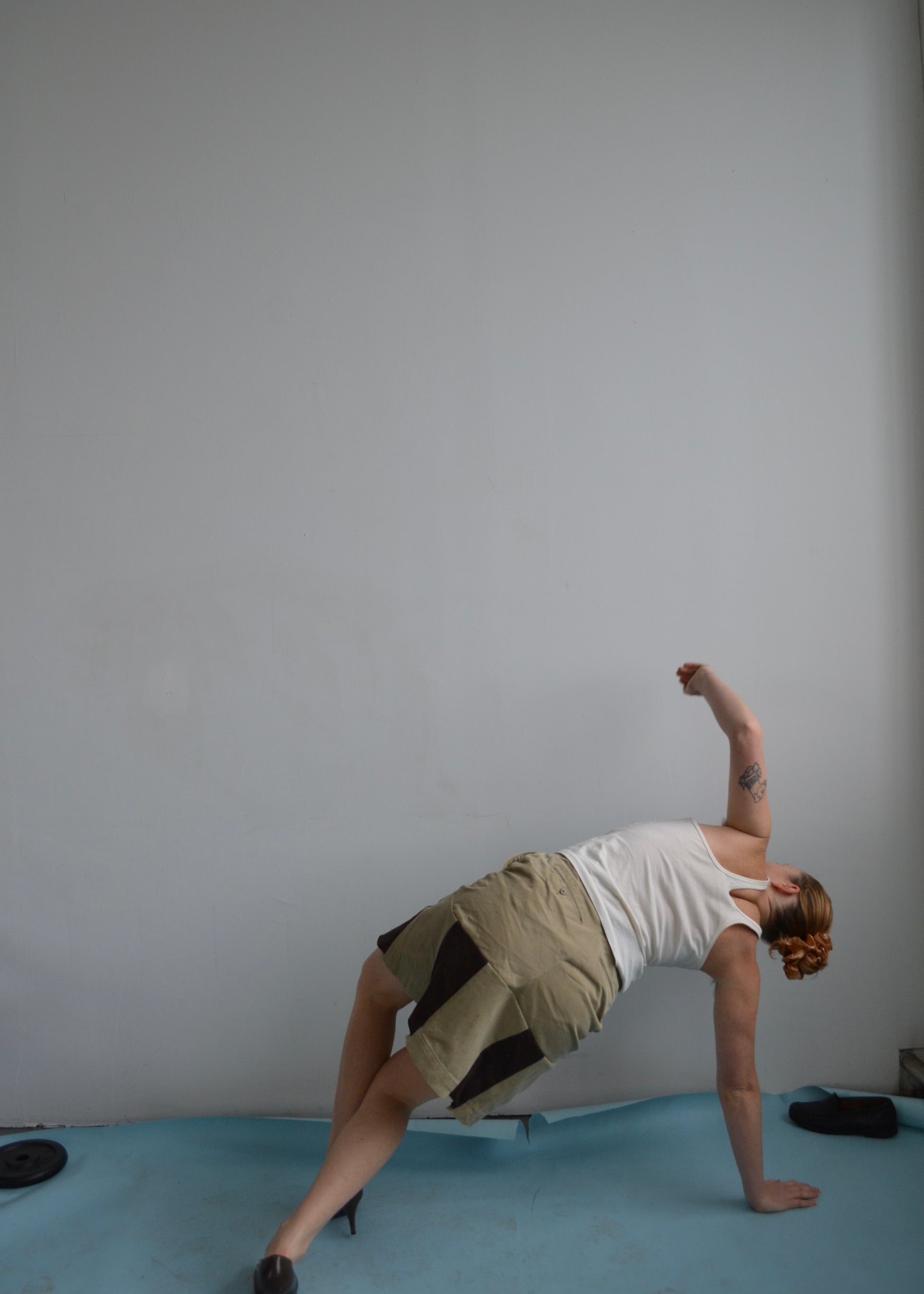 Repurposed vintage khaki pant waist combined with deadstock brown cotton sateen.