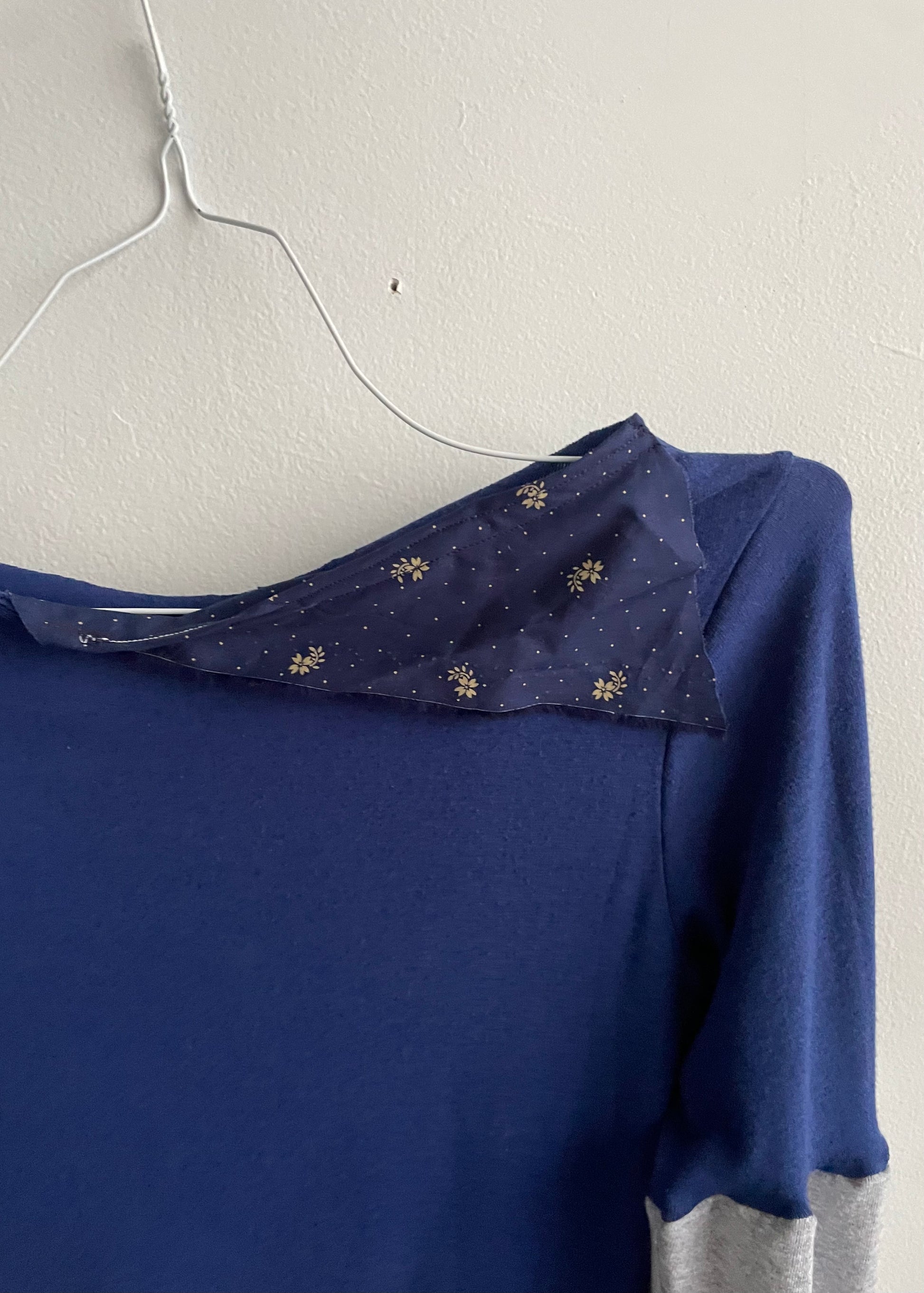 Repurposed cotton jersey, remnant floral cotton patch